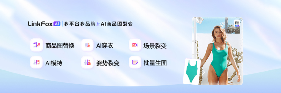 LinkFox AI通过AI技术,提供批量生图、商品图合成、AI模特、场景素材生成等功能,帮助卖家提升商品的展示效果和吸引力。